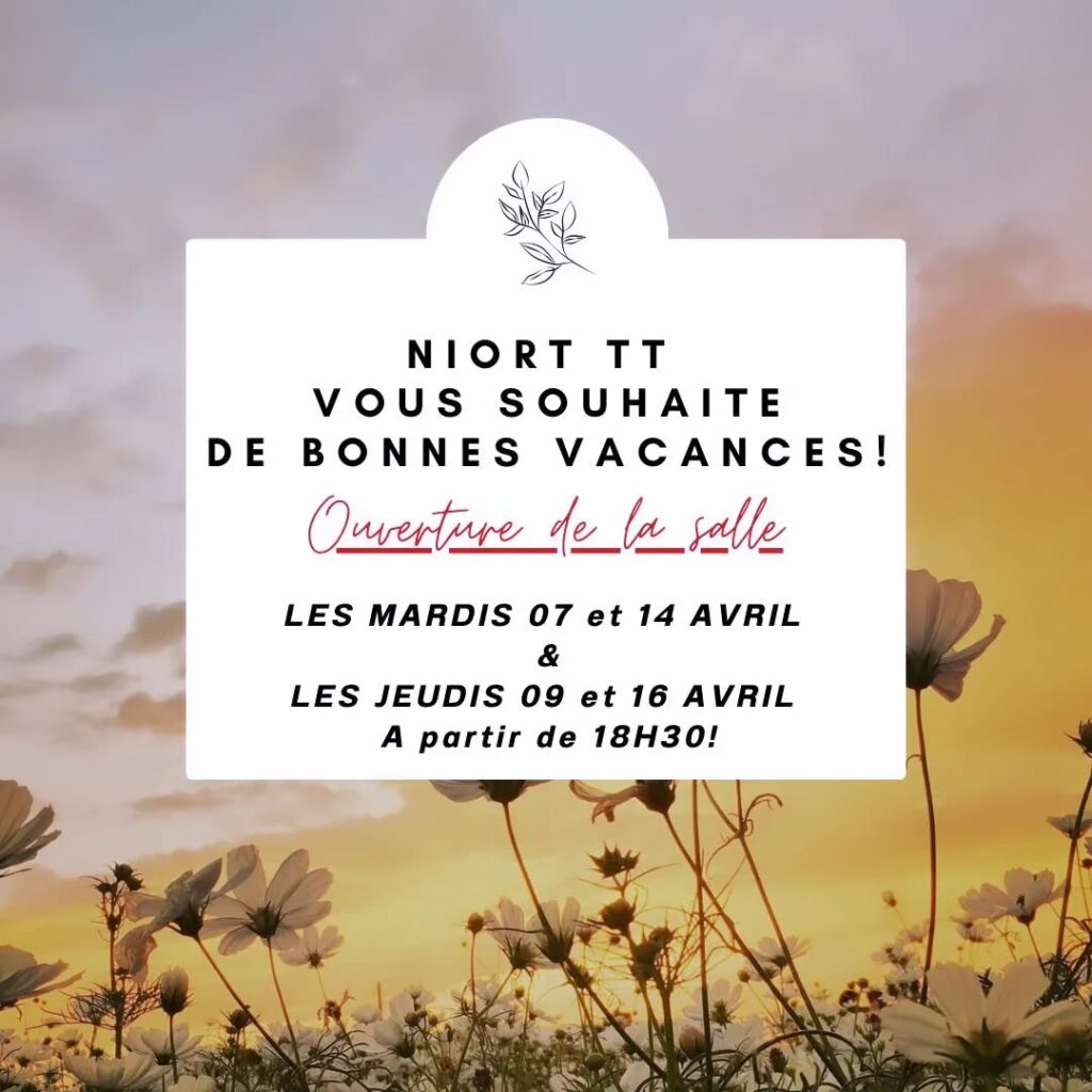 Pendant les 2 semaines des vacances scolaires de la Toussaint, la salle de Niort TT sera ouverte uniquement pour les licenciés du club pour des séances libres :